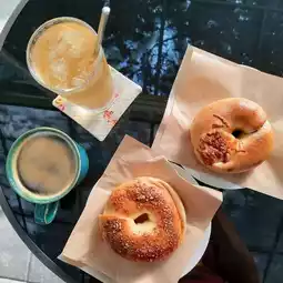 The picture shows green tea (40 yuan), signature cheese bagel (65 yuan), and green sauce smoked chicken bagel (65 yuan). The freshly baked bagels are very chewy and have delicious fillings. After eating them, I want to buy another one for breakfast (。•ω•。)ノ♡