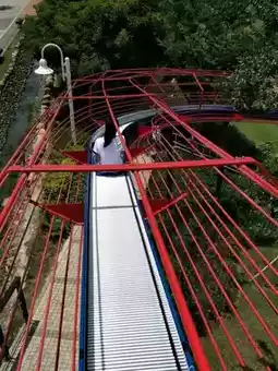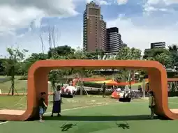 When we arrived in Taoyuan, we discovered that there were quite a few parks of all sizes in the city. We visited no less than five parks in Taoyuan city and we specifically searched for them. The density of parks in Taoyuan city is probably the highest in Taiwan! I guess. In order to collect roller slides all over Taiwan, I took advantage of the Dragon Boat Festival holiday to bring the children from Pingtung to Taoyuan to play on roller slides. Fenghe Park is quite large compared to the urban area. The environment and planning design are of quite high standard, with designs such as pond arch bridge, forest boardwalk, children's play area, performance plaza, service center, etc. The purpose of our visit was to slide on the roller slide, and we found someone selling roller plastic cushions nearby. We bought five cushions of different colors for one hundred yuan without saying a word. You could rent them before at Chiayi's Ziyun Temple. The Hamashing roller slide in Kaohsiung will provide mats after you buy a ticket, but there are no such mats in other places and you need to prepare them yourself. So I bought it and I don’t have to worry about sliding down the roller slide with my butt when I go to play on it. I really like Fenghe Park. It is very comfortable to visit and not noisy. It is one of the few parks of high quality that I have visited in Taiwan. I don’t know how long this park has been in use. Some of the facilities in the children’s playground are still surrounded by ropes. It may be a newly added venue, or the park may have been built not long ago. No matter how hard it is to see the kids having fun, it’s worth it for parents to drive a long way.