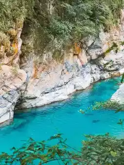 π What can you do here:-Qixing Tan There is a walking area on the beach.-Clear Water Cliff A photo spot by the sea and the mountains at the same time.-Shakadong Trail A 2-kilometer trail that winds along the side of the mountain. Below is a stream with beautiful blue water.-Suspension Bridge A bridge shaped like a Chinese character meaning "moon". The view in the middle of the bridge is a mountain groove with a stream running through it.-Swallow Grotto Trail A walkway tunnel. Below is a large stream.-Eternal Spring Shrine A viewpoint of a temple with water flowing through the middle.