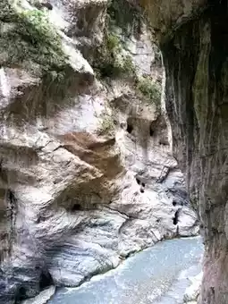As you ascend the winding paths, you'll encounter steep gorges with streams flowing alongside and even spot monkeys darting through the branches.