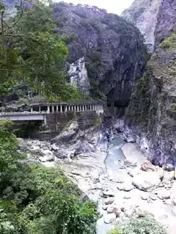 Taroko Gorge, one of Taiwan's national parks, is a breathtaking place where green-topped marble cliffs fill your view.