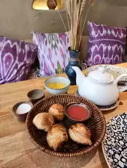 The prices are higher than other restaurants, but since prices in Uzbekistan itself are not high, the tea and samosa in the photo cost about 1,130 yen for two people ♪