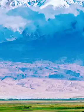 Here, the blue sky, white clouds, snow-capped mountains, rivers and grasslands are perfectly integrated, presenting the most authentic plateau landscape. It is hard to find another picture that can simultaneously display snow-capped glaciers, red ridges, green pastures and gurgling streams. Each layer is a unique landscape and landform, but together they elevate this stunning scenery again. Southern Xinjiang is mostly desert, with a dry climate, and the Pamir Plateau is the same, but the Taerman Wetland is a rare plateau pasture.