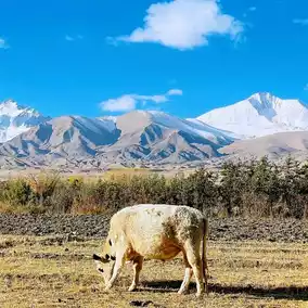 Coming out of the tree hole, there is a wetland📸👍 and a wild pasture📸❤️. Further away are the snow-capped mountains of the Kunlun Mountains📸🌹.