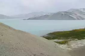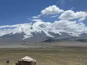 ●We passed Muztagh Peak. The weather was very good and the snow-capped mountains were very clear. We took a photo with the snow-capped mountains on the grass.