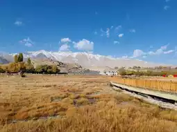 The Taxkorgan River meanders through the area, nourishing this vast wetland spanning 100,000 acres. In the distance, snow-capped mountains stand against blue skies and white clouds, while nearby, the golden grassland spreads like a carpet, accompanied by the historic Stone City ruins. Together, they form a magnificent idyllic pastoral symphony of the plateau. This place is not only an ecological treasure but also an ideal location to witness the sunset over Muztagh Ata Peak.