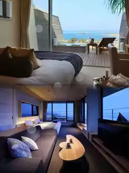 At first glance, The Shinra captivates with its simple yet stylish exterior. Though unassuming, the hotel leaves a lasting impression on many visitors with its unique seaside location and excellent service. From the hotel, it's just a 1-minute walk to Shirosaki, where you can feel the gentle sea breeze and fine sand. A short 6-minute drive will take you to Minami Boso Quasi-National Park, a tranquil oasis amidst the hustle and bustle of life. π³π