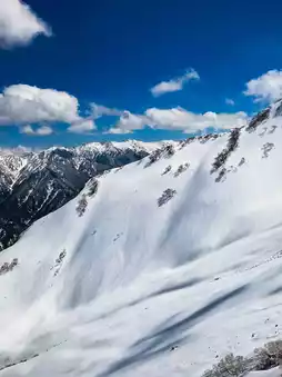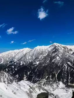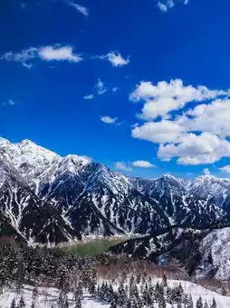 Standing atop the high mountains, the vast snowfields and majestic mountain ranges unfold before your eyes. This is Tateyama Kurobe, one of the most breathtaking sceneries in the Northern Japanese Alps. The snow-covered peaks glisten under the sunlight, resembling a flawless, pure painting.