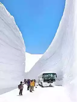 • Visitors can walk along a path carved between the massive snow walls.