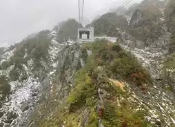 Afterwards, we walked to Daikanbo Peak and took the cable car to Kurobe Terrace. Along the way, we were pleasantly surprised to see the crimson leaves at the base of the mountain against the backdrop of the first snow on the summit. This reminded me of Joey Yung's song "#赤地雪." While the lyrics don't refer to the scenery, crimson leaves paired with the first snow—doesn't that make it look like crimson snow?