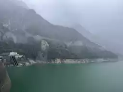 Arriving at Lake Kurobe, the rain continued to fall, but that didn't deter me from heading to Kurobe Dam. The view of the lake was magnificent. Walking to Kurobe Dam, the imposing dam discharge and the flowing water beside it reminded me of the phrase "the highest good is like water" I'd learned in textbooks. Despite the drizzle, it added a touch of literary flair.