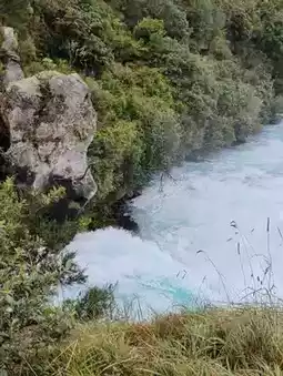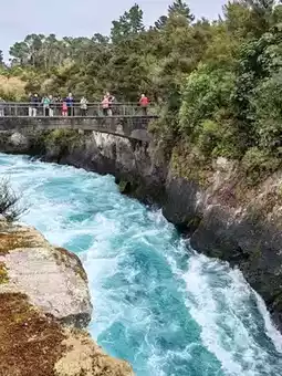 Near Taupo on New Zealand's North Island, Huka Falls presents a spectacular wonder on the Waikato River. The river, which flows through a channel about 100 meters wide, abruptly narrows into a gorge only 15 meters across. With a tremendous force, over 220,000 liters of water per second surge down an 11-meter drop, churning into a powerful rush of roaring white foam—inspiring the Māori name "Huka," meaning "foam." The waterfall's striking turquoise-blue hue adds to its allure, making it one of New Zealand’s most popular and awe-inspiring natural landmarks.