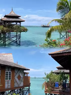 - Kapalai Island: The water here is a clear jelly color. Standing on the terrace of the water villa and looking down, you can clearly see the coral and starfish on the seabed. At low tide in the afternoon, the beach under the villa is exposed. Walking barefoot on it, the sand is as fine as flour. The distant horizon blends the sea and sky into one, so quiet you can only hear the sound of the waves.