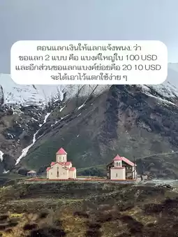 Let’s review how to exchange cash to prepare for your trip to Georgia! 💰. ⭐️ The currency of Georgia is Lari, abbreviated as GEL, so it is sometimes called GEL instead. In Thailand, there is no direct way to exchange cash to GEL. You must exchange baht to USD or Euros (EUR) first. When I traveled, I chose to exchange to USD first because the EUR is more expensive. ⭐️ I exchanged USD at SuperRich. I told the staff “I want to exchange money without a stamp” because I read a review that some money exchange shops in Georgia will not accept banknotes with a stamp. When exchanging money without a stamp, the exchange rate will be about 0.05 more expensive than with a stamp (depending on the exchange rate at that time). ⭐️ I asked to exchange large banknotes, which are 100 USD, and smaller banknotes, which are 20 and 10 USD, so that they are easy to use. When you arrive in Georgia, you will exchange GEL at a money exchange shop at the airport. Or you can exchange money outside. In Georgia, most of the time when we travel, we use cash alternately with Youtrip. When we go out of town, we use only cash. We use Youtrip only in stores in the mall or restaurants in the city.