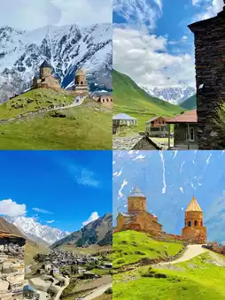 📍Kazbegi: Lonely Planet cover star—snowy peaks meet the solitary Gergeti Trinity Church