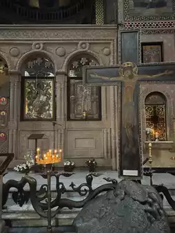 The interior of the church is distinctly different from typical European churches. Sacred relics and icons are placed throughout, and visitors can witness locals praying in front of them. It is a place where one can feel the humble yet enduring faith of the Georgian people.