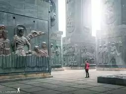 •	Massive Stone Columns ⛓️ – 16 huge pillars (30–35 meters tall) designed by Georgian sculptor Zurab Tsereteli.