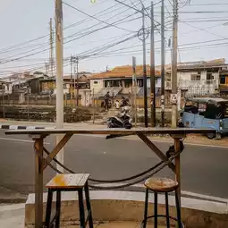 A few days ago mimin played here. the shop is not big but the outdoor area is really cool for afternoon coffee while watching the train passing by hahaha. because the location is right next to the Tebet-Cawang railroad crossing. really fun right? ️