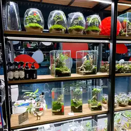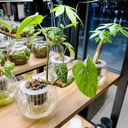 Naug Just Plants is a special store that sells indoor plants. Their pop-up stall offers a unique selection of greenery for your home or office. One thing that makes them different is their plants in glass containers. These plants look really classy and add a touch of elegance to any space.