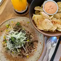 The lemongrass kombucha was pleasantly sour with a subtle sweetness, unlike other kombuchas I've tried. The restaurant's atmosphere is also very inviting, making it a great spot to enjoy a meal. I would definitely recommend visiting them.