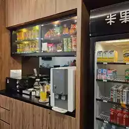 At the lobby u find some complimentary snacks and both hot and cold drinks as well as some for purchase. There is also a co-working area for hotel guest use.