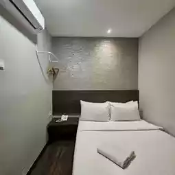 Room size is good enuf for me with a queen bed and 4 pillows, 3 power points, a work table, TV and an average size bathroom with water heater. Toiletries are provided as well as complimentary drinking water and 3 in 1 coffee.