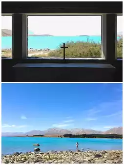 From the altar inside the church, you can get a panoramic view of Lake Tekapo, which is also a great spot📸