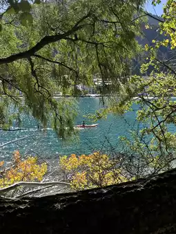 The sparkling lake's beauty touches your heart.