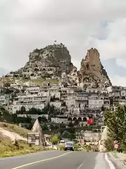 Wow! This is the only thing I could say when I saw this city. A couple of kilometers before entering Uchisar, you notice a huge rock, the slopes of which are covered with houses. But the most amazing thing is that inside this rock there are also residential caves. This place looks fantastic, as if you were in some movie about the Middle Ages.