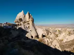 In the middle of Cappadocia stands a mountain that people have turned into a home. This is Uchisar, a fortress carved directly into the tuff rock. It's the highest point in the region, visible from almost any valley.