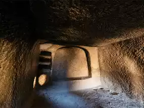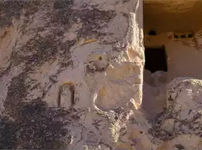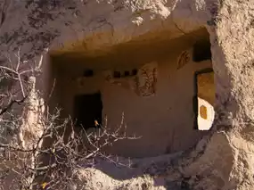 — rooms carved out of the rock with niches, fireplaces, and ventilation holes;
