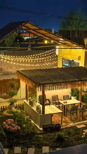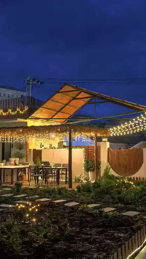 By day, bask in the sun on wicker chairs with coffee☕, watching kittens roll in the flowers🐱; by night, when the lights glow🌌, the courtyard transforms into a dreamy world. As night falls🎦, enjoy drinks and chats with friends—the vibe is absolutely perfect!!
