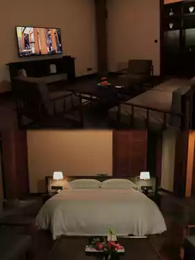 The hotel rooms start from 80 square meters, with wooden decoration style, warm yellow lighting design, and ancient elements everywhere. In a trance, it seems as if you have come to the leisurely Zen world of the ancients. Each room is equipped with a private hot spring, which introduces Tengchong's unique carbonated hot spring water, which is rich in various natural mineral elements and blends the nourishment of volcanic minerals. The water is as smooth as fat, nourishing and moisturizing the skin, and healing the body and mind.