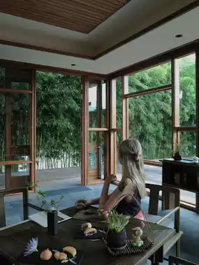 | An oriental Zen hotel hidden in the ancient town of Heshun. The hotel is located to the west of Heshun Ancient Town, covering an area of 180 acres. It has 600-year-old houses and temples, and is surrounded by volcanoes and wetlands and rivers. The hotel design is full of oriental Zen spatial aesthetics, presenting a fresh, elegant, simple and generous layered beauty.