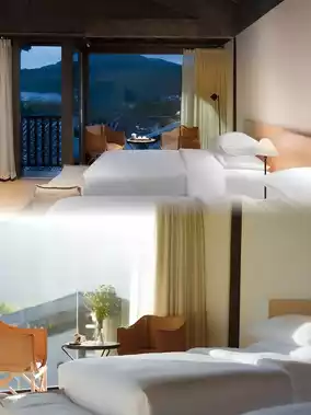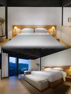 💜The Mountain View Balcony Private Tea Pavilion room we booked is on the second floor, with better light and view than the first floor. The basic configuration of the room is also above standard, the smart toilet🚽 and washing and care🧴 products all make me quite satisfied. The bathroom water temperature and water volume are very comfortable, the only shortcoming is that the drainage problem of this kind of old-style residence is somewhat unsatisfactory. Overall, the interior of the room is worth the price.