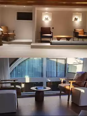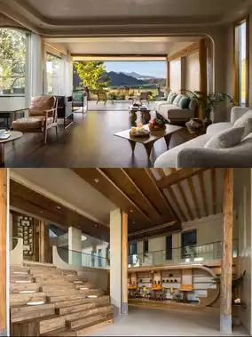 Stepping into the room, you will be attracted by the 6-meter to 15-meter overlapping arch elements, each curve telling the designer's thoughts. The Burmese imported teak furniture in the room is simple yet elegant, making you feel like you are in nature. And the 2-meter king-size bed and 1.5-meter tatami bed are enough for you and your family to enjoy a comfortable and warm night.
