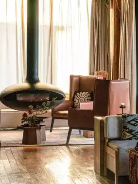 - Rooms crafted with natural wood and volcanic stone