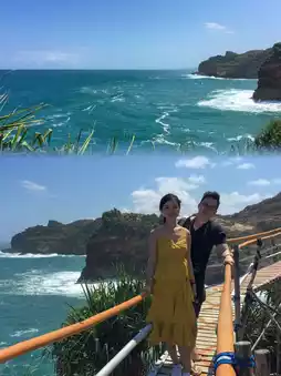 One of the highlights of our Yogyakarta trip was visiting Timang Beach, a hidden gem known for its rugged beauty. The journey to the beach was an adventure itself—we had to take a bumpy jeep ride from the village. The road was so rough, I felt like my organs were getting mixed up!