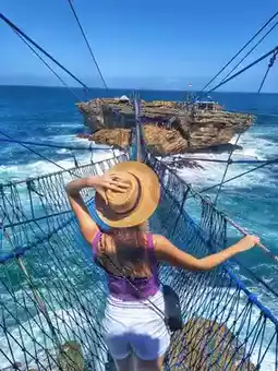 Take a ride on the simple yet charming cable car, cross the raging waves 🌊, feel the sea breeze on your face, and your heart racing. The cliffs, coral reefs, and azure waters here exude a wild charm, as if telling the ancient stories of the ocean.