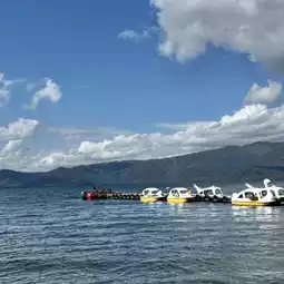 There are souvenir shops nearby selling soft-serve ice cream and hot spring eggs 🎶.
