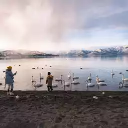 If you want to attract swans, just hold a bucket of popcorn in your hand🍿