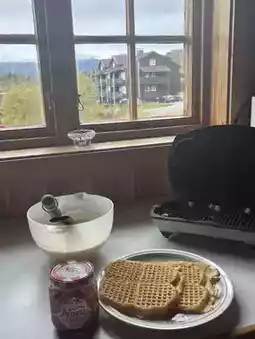 For a quieter experience, you can also stay in nearby Beitostølen town, about 30- 45 minutes away by car. The town is small but has a few restaurants and supermarkets open on Sunday. We stayed there — it was affordable for a group, and we could cook our own meals. We made Norwegian waffles and it was really nice.