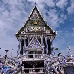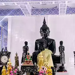 🌼 This church stands out with its deep blue architecture, contrasting with the sky and sea views on the side, creating a peaceful and sacred atmosphere, perfect for worship and meditation. Inside, a beautiful principal Buddha image is enshrined, creating a sense of tranquility for worshippers.