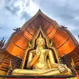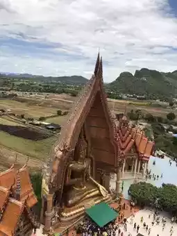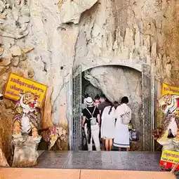Wat Tham Suea Kanchanaburi is a very beautiful temple located on the top of the mountain. Pay homage to the large Buddha statue that bestows blessings, decorated with beautiful golden mosaics. Pay homage to the relics of the Lord Buddha. We can go up to see the temple by walking up the 158-story Naga stairs or by walking up the stairs on the right of Tham Suea. But if you really can't walk, it costs 20 baht. There is a tram and a lot of parking. Wat Tham Suea is the most famous temple in Kanchanaburi Province. It has the largest Buddha statue in Kanchanaburi. #BeautifulTemplesAcrossThailand #KanchanaburiTemples #FamousTemples #OldTemples #WatThamSuea