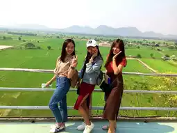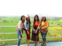 take pictures with the view of the rice fields in the background. The air is good, and the pictures are beautiful.