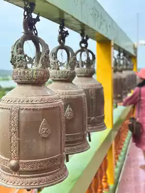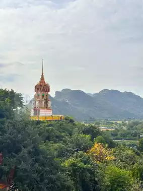 âšïļ Tiger Cave Temple, Kanchanaburi is another landmark that you can't miss when visiting Kanchanaburi. The impression starts from walking up a thousand steps (or taking a tram) to pay homage to the large golden Buddha statue in the blessing posture. The surrounding atmosphere is shady, the air is fresh, and the scenery is beautiful. Especially the view from the highest point, you can see the surrounding scenery far and wide. In addition, there is a beautiful and magnificent Chedi Kesa Kaew Maha Prasat and Tiger Cave, which is the origin of the temple's name, for you to visit. Tiger Cave Temple is not only a sacred place for worship and praying, but it is also a tourist attraction that perfectly combines the beauty of nature and architecture, making it another interesting destination.