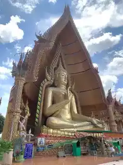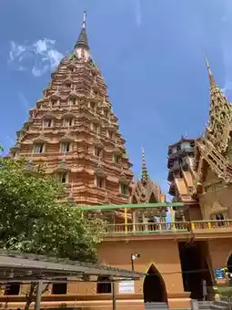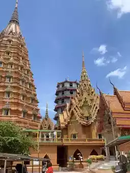 Wat Tham Suea is located on a hill in Tambon Tha Muang Chum, Amphoe Tha Muang, Kanchanaburi Province, before entering Kanchanaburi city. The large statue of Luang Pho Chinn Prathanphon is 9 wa 9 inches high and 5 wa 3 sok 9 inches wide at the lap. It was built in 1973. “Phra Chedi Kesu Kaew Maha Prasat” is an octagonal orange pagoda, 69 meters high and 29 meters wide, very large and can be seen from far away. There are 9 floors in total. In the middle, there is a spiral staircase that can be walked up to the top floor. Each floor has paintings about Buddhism and the king. The top floor enshrines the relics of the Lord Buddha brought from India. And relieve your fatigue with the view from the pagoda windows, which are all around. You can see the Mae Klong River, mountains, rice fields, and Wat Tham Khao Noi, which is next door. If anyone can't walk up the stairs, there is a tram for 20 baht per person. #VisitKanchanaburi #BeautifulTemplesKanchanaburi #Tiger Cave Temple, Kanchanaburi