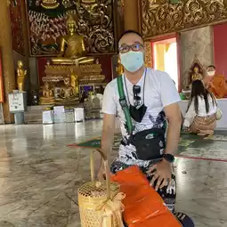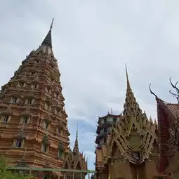 Located in Tha Muang District, Kanchanaburi Province. Things that catch the eyes of tourists who come to visit the temple To pay homage to the chedi is the largeness of the temple and the largest Buddha image in the blessing posture in Kanchanaburi Province. The Buddha image is beautiful and decorated with golden mosaics all over. When you arrive at the top, you will find the freshness of the wind that blows cool and strong. Looking down, you will see the green rice fields. There is also the Kesa Kaew Prasat Chedi, the entire chedi is brick-colored and is divided into several levels. Each level enshrines many Buddha images, up to the top level where the relics of the Lord Buddha were enshrined from India. There are also various temples where you can go in to pay homage to the Buddha image and admire the beauty of the mural paintings inside. When you have seen everything, go down to the Tiger Cave, a small cave at the foot of the mountain below. Inside, there is the Buddha image of the day of birth and sacred objects for sale.