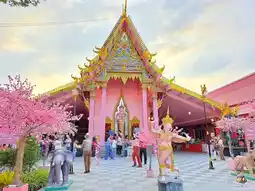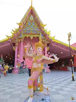 A pink temple 🛕 where locals and tourists come to worship and ask for blessings from #TaPhranBoon, a large pink statue ...