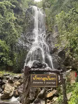 Just went to Sunantha Waterfall, located in Khao Nan National Park. The atmosphere is very good, very natural. The waterfall is dozens of meters high, flowing down in layers, very beautiful. You can play in the water to your heart's content. Most importantly, there are not many people, it is quiet and peaceful. It is not difficult to walk in. There is a short nature study trail. Along the way, there are many trees, shady, suitable for sitting, lying in a hammock, having a picnic comfortably. But there are no shops inside. You have to bring your own food. Anyone who likes nature-style travel must try! #Get a discount without relying on luck